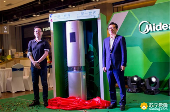 緊接著,陜西蘇寧總經(jīng)理王軍先生和美的空調(diào)陜西產(chǎn)品中心總經(jīng)理余琎先生一起為美的空調(diào)Air空間站揭幕。