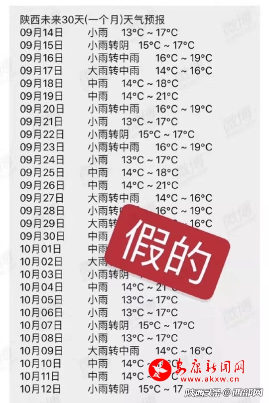 本網(wǎng)訊 這兩天,一張“陜西未來30天的天氣預(yù)報”圖片,在陜西人的朋友圈流傳。
