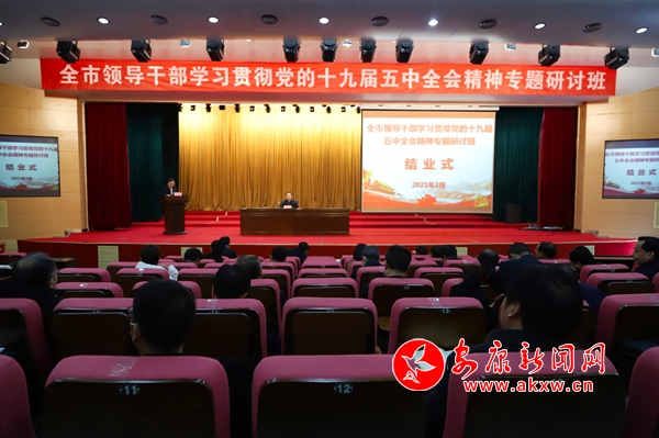 本網(wǎng)訊(記者 吳單)2月25日,全市領(lǐng)導(dǎo)干部學(xué)習(xí)貫徹黨的十九屆五中全會(huì)精神專(zhuān)題研討班在市委黨校結(jié)業(yè),市委副書(shū)記王剛作總結(jié)講話。全體學(xué)員參加結(jié)業(yè)式并集中收看了全國(guó)脫貧攻堅(jiān)總結(jié)表彰大會(huì)直播,5名學(xué)員代表作交流發(fā)言。