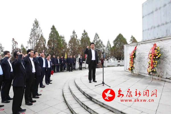 牛蹄嶺戰(zhàn)役遺址是全市愛(ài)國(guó)主義教育基地,中國(guó)人民解放軍第十九軍在此打響的牛蹄嶺戰(zhàn)役為解放安康乃至陜南作出了重要貢獻(xiàn)。春日的牛蹄嶺蒼勁翠郁、豐碑聳立。上午9時(shí)許,市委常委班子成員拾階而上來(lái)到牛蹄嶺戰(zhàn)役紀(jì)念碑廣場(chǎng),向在戰(zhàn)役中英勇犧牲的革命烈士默哀并敬獻(xiàn)花籃,表達(dá)緬懷之情。面對(duì)黨旗,大家重溫入黨誓詞,鏗鏘的宣誓聲響徹牛蹄嶺、回蕩山谷間。隨后,大家認(rèn)真聆聽激戰(zhàn)牛蹄嶺的紅色歷史,瞻仰牛蹄嶺戰(zhàn)役紀(jì)念碑,追憶革命先輩英勇無(wú)畏、舍生取義的崢嶸歲月。