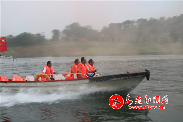 雨中的瀛湖碧水粼粼,四周山嵐氤氳繚繞。上午九時,演習(xí)活動冒雨開始,劉建平在致辭中闡釋了本次演習(xí)的重要意義,感謝省上領(lǐng)導(dǎo)專家蒞臨指導(dǎo),強(qiáng)調(diào)要不斷完善強(qiáng)化水上應(yīng)急措施,確保賽事圓滿進(jìn)行,并預(yù)祝演習(xí)圓滿成功。隨即包括應(yīng)急響應(yīng)、水上綜合演練(包含搜救打撈、消防滅火、傷員救治、遇險船拖)、水上防風(fēng)預(yù)警演練、游泳賽場運(yùn)動員救援四部分演練正式拉開帷幕。首先是應(yīng)急響應(yīng),各救援分隊向指定地點(diǎn)集結(jié)并檢查報告救援船艇、設(shè)備、人員到位情況,總指揮下達(dá)演習(xí)開始指令。緊接著是水上綜合演練,只見翠屏島南側(cè)寬闊的湖面上,兩艘東西方向相向而行的客船發(fā)生“碰撞,一艘起火,有人員落水”,接到救援信息后,現(xiàn)場總指揮向瀛湖海事局下達(dá)救援指令,執(zhí)行組長分別向海事、景區(qū)公安、交運(yùn)公司等救援隊發(fā)出指令,十?dāng)?shù)艘救援船只接到命令后迅速趕赴事發(fā)現(xiàn)場,在湖面掀起了層層的浪花,有的負(fù)責(zé)事故水域交通管制、碼頭及救援現(xiàn)場秩序維護(hù),有的負(fù)責(zé)事故船只消防滅火、定點(diǎn)?考巴蠋ё鳂I(yè),有的負(fù)責(zé)水域搜尋救撈、旅客轉(zhuǎn)移……現(xiàn)場氣氛緊張、忙而不亂,打撈搜救任務(wù)成功完成,火情得到有效控制,失去動力的遇險船舶被拖帶至安全地點(diǎn),3名“溺水昏迷人員”成功實(shí)施現(xiàn)場急救(心肺復(fù)蘇)并轉(zhuǎn)移至岸上醫(yī)療救助點(diǎn)實(shí)施救治。隨后是水上防風(fēng)預(yù)警演練,模擬瀛湖核心景區(qū)局部水域突起大風(fēng)威脅船舶航行安全,海事局立即發(fā)布禁航通知,組織在航船舶及乘客就近?勘茈U。最后是游泳賽場運(yùn)動員救援,“游泳賽事中突然有1名運(yùn)動員出現(xiàn)身體不適需要救援”,接到救援信號后,水上應(yīng)急隊伍迅速駕駛執(zhí)法沖鋒舟趕到事發(fā)水域,對運(yùn)動員進(jìn)行施救并轉(zhuǎn)運(yùn)至醫(yī)療點(diǎn)。