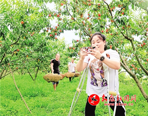 文化村七組,李丹桃園早已聲名遠(yuǎn)播,每年春秋時(shí)節(jié),來來往往的游客幾乎把田埂都要踏平。抓住契機(jī)的李丹,不僅通過直播賣桃攬客,還開設(shè)了農(nóng)家樂,打造出集生態(tài)觀光、果蔬采摘、餐飲住宿于一體的田園綜合體,為文化村帶來了人氣、盤活了地氣、聚攏了財(cái)氣。
