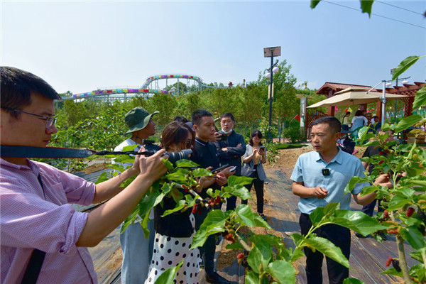 游客在池河鎮(zhèn)明星村醉美桑海博覽園采摘桑果