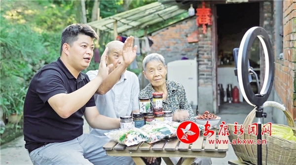 張萬露和爺爺奶奶在直播。