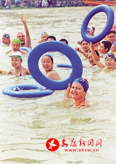 第一屆龍舟節(jié)的游泳隊中還有英國支教老師琳達的身影。吳永東 攝