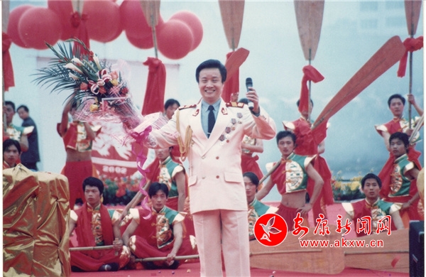 2002年5月2日,著名軍旅歌手閻維文在第三屆安康龍舟節(jié)開幕式上演唱。 趙方 攝