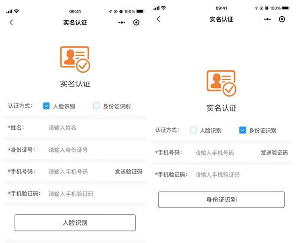 第二步,選擇“人臉識別”或“身份證識別”,按照提示填寫信息,完成實名認(rèn)證。