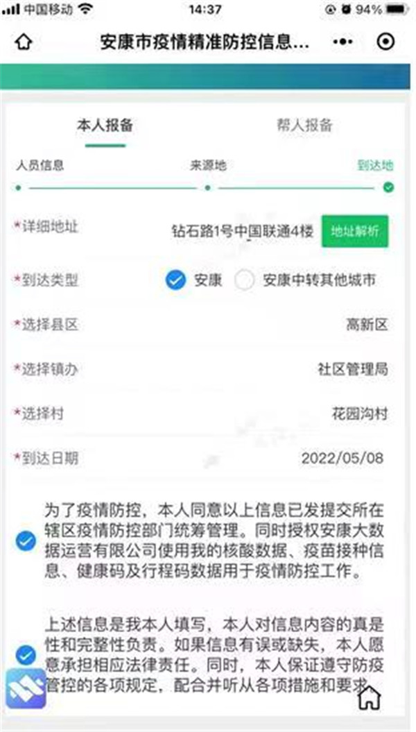 3.將抵達安康市人員,提前預(yù)登記步驟