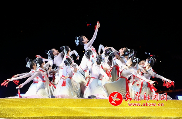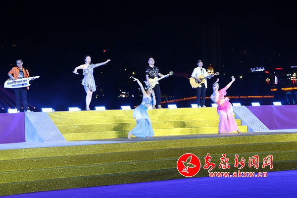 粼粼波光微微風(fēng),樂舞燈火“靚”漢江。演出以絢麗奪目的燈光秀《多彩漢江》開場,漢江兩岸五光十色的燈光隨著音樂的節(jié)律不斷變換、舞動(dòng),使得一江兩岸如夢如幻、詩意盎然,動(dòng)感十足的爵士舞蹈《動(dòng)感安康》展現(xiàn)了安康的青春活力,原汁原味的本地歌舞《山歌不唱不開懷》《漢水旗韻》《荷包香安康》《漢江漁歌》《喬木花》《號(hào)子·龍舟》等以獨(dú)特的唱腔、曼妙的舞姿展現(xiàn)傳統(tǒng)漢水文化以及秦巴兒女勤勞淳樸的精神風(fēng)貌,熱情激昂的歌舞《母親安康》演唱出漢水兒女熱愛山水的樸素愿望和對美好生活的向往。演出期間,旅游形象大使還對紫陽、漢陰、嵐皋等縣區(qū)的特產(chǎn)、美食、旅游景點(diǎn)、傳統(tǒng)文化等進(jìn)行推介。
