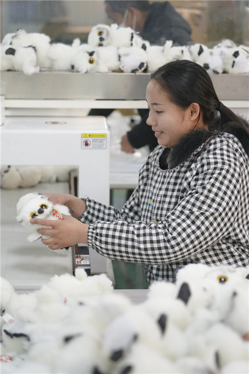 安康市漢濱區(qū)五里鎮(zhèn)朝陽社區(qū)一家新社區(qū)工廠生產(chǎn)的毛絨玩具產(chǎn)品(2月22日攝)。新華社記者邵瑞攝
