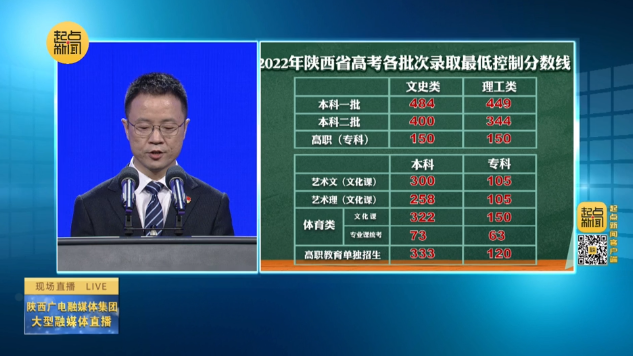 本網(wǎng)訊 6月24日,據(jù)2022年陜西省高考各批次錄取分?jǐn)?shù)線新聞發(fā)布會公布,陜西的理工類分?jǐn)?shù)線本科第一批為449分、第二批344分、專科(高職)批150分;文史類分?jǐn)?shù)線,本科一批484分、二批400分、?疲ǜ呗殻┡150分。