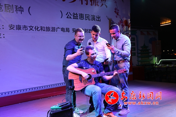 隊(duì)伍行進(jìn)到一位本地露天“駐唱歌手”跟前,大家被優(yōu)美的旋律感染,迅即拿起手機(jī)拍攝起來(lái)。一位、兩位、三位……,歌手身邊圍滿了隨著曲調(diào)起舞的異國(guó)朋友。漸漸地,圍觀的群眾也加入進(jìn)來(lái),有孩子、有少女、也有老人,現(xiàn)場(chǎng)氣氛被瞬間引爆。“我愛(ài)安康!”一個(gè)外國(guó)記者的聲音接著引來(lái)大家高昂地吶喊:“我愛(ài)安康,我愛(ài)陜西,我愛(ài)中國(guó)!”