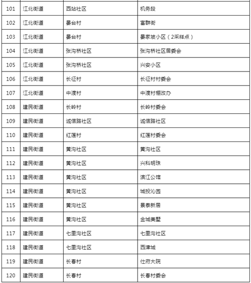 共設(shè)置120個(gè)采樣點(diǎn)(見(jiàn)附件),由4個(gè)街道辦事處統(tǒng)一安排采樣點(diǎn)設(shè)置、人員組織、秩序維護(hù),檢測(cè)對(duì)象按照街道辦事處要求,分時(shí)段有序到指定地點(diǎn)進(jìn)行采樣,避免人員聚集。