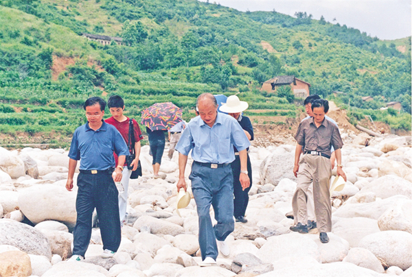 熊邦高在寧陜四畝地鎮(zhèn)查看災(zāi)情