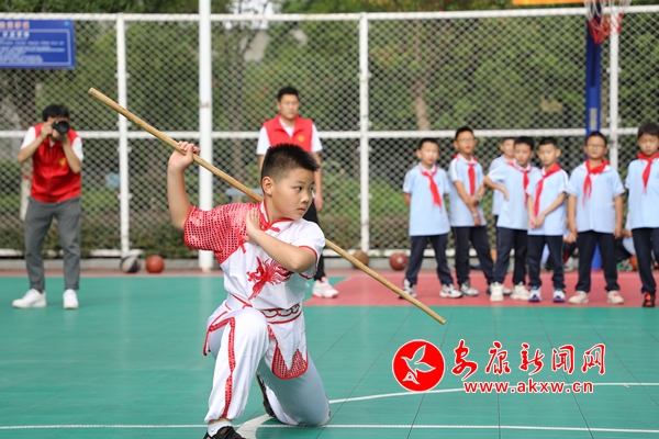 簡短的啟動儀式結(jié)束后,市創(chuàng)文辦一行參觀了社區(qū)書吧,并在運動場觀看未成年人展示活動。展示內(nèi)容主要包括現(xiàn)場書寫社會主義核心價值觀、集體花樣跳繩、籃球訓(xùn)練、獨唱、個人武術(shù)和倡議書宣讀,F(xiàn)場,同學(xué)們身著整齊的服裝,戴著鮮艷的紅領(lǐng)巾,精神煥發(fā)地來到展示場地。在熱烈歡快的節(jié)奏中,一張張笑臉洋溢著自信和陽光,舉手投足間盡顯安康少年風采。流暢的書法、炫酷的跳繩、優(yōu)美的歌聲、靈動的棍法……孩子們的精彩表演引來一眾居民駐足圍觀,不時傳來熱烈掌聲。