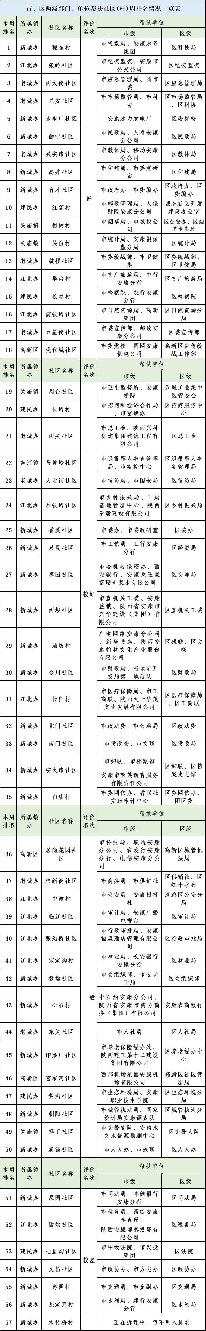 附件:市、區(qū)兩級(jí)部門、單位幫扶社區(qū)(村)周排名情況一覽表