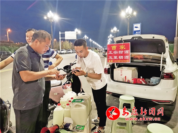 談及對“后備箱”經濟的看法,以及為何要參與夜市擺攤的緣由時,雷玉濤笑著說道:“最開始就是想著下班了沒事干過來擺攤,順便給自家的稠酒做宣傳,后來慢慢地從擺攤的過程中找到了樂趣。平時我大部分時候都坐在辦公室,沒有太多和人接觸的機會,擺攤后我接觸到形形色色的顧客,和別的擺攤車主聊聊天,感覺挺有意思的,而且收入還增加了,也體驗了不同的經營形式。我理解的‘后備箱經濟’不僅僅具備經濟功能,還有社交、文化、娛樂功能,且形式靈活,適合多種群體創(chuàng)業(yè)和體驗生活。”