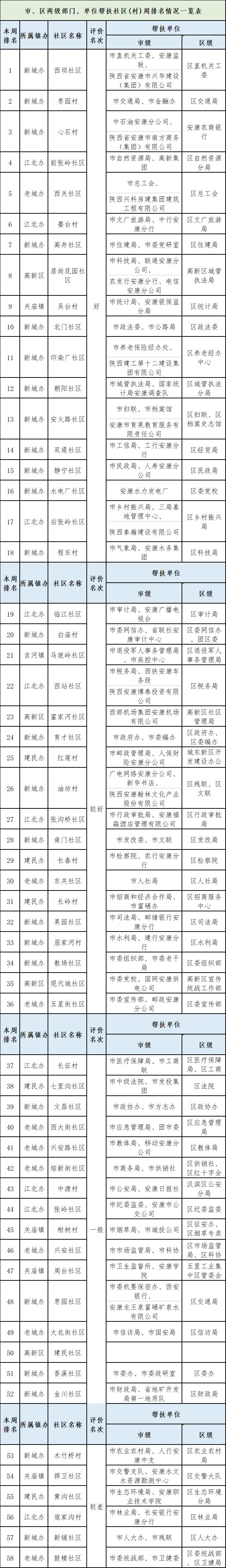 附件:市、區(qū)兩級部門、單位幫扶社區(qū)(村)周排名情況一覽表