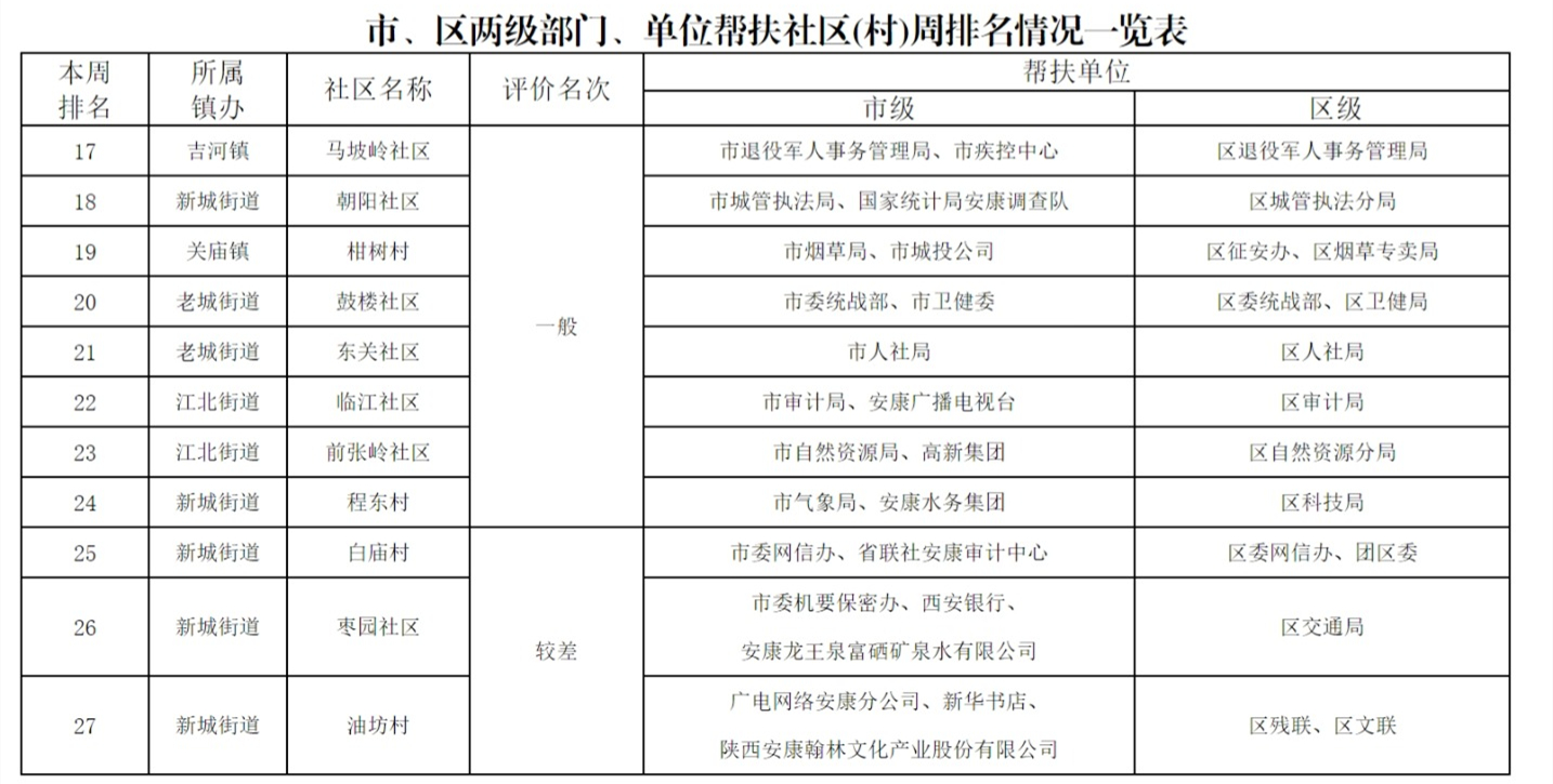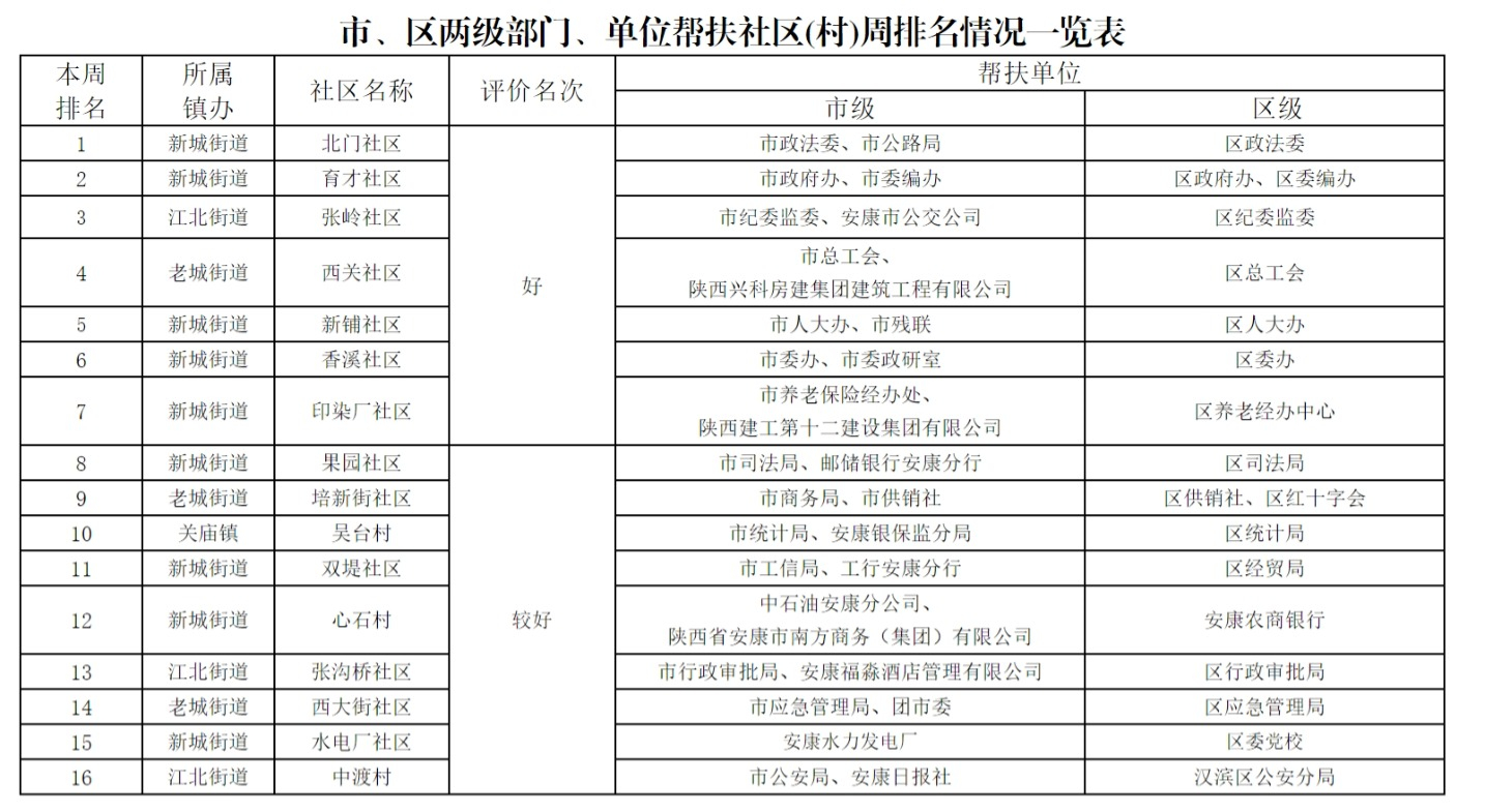 附件:市、區(qū)兩級(jí)部門幫扶社區(qū)(村)周排名情況一覽表