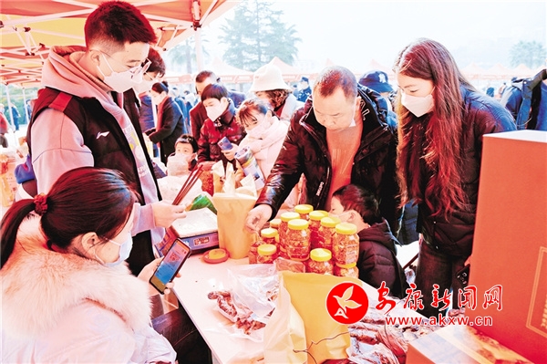 ⑥紫陽年貨節(jié)上,本地企業(yè)正展示當(dāng)?shù)靥禺a(chǎn)。