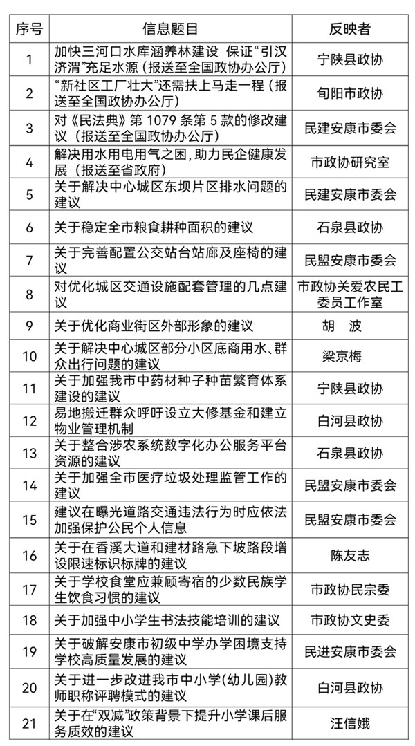 為表彰先進、樹立典型,推動反映社情民意信息工作提質(zhì)增效,根據(jù)《市政協(xié)反映社情民意信息工作評選表彰辦法》,經(jīng)對2022年度各單位報送的社情民意信息進行認真評審、市政協(xié)五屆十二次主席會議審議,決定對21篇優(yōu)秀信息予以通報表彰。