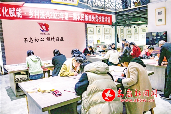 “對(duì)于農(nóng)民來說,零成本、零壓力。”作為版畫院負(fù)責(zé)人的蔚世生道出了培訓(xùn)的目的。