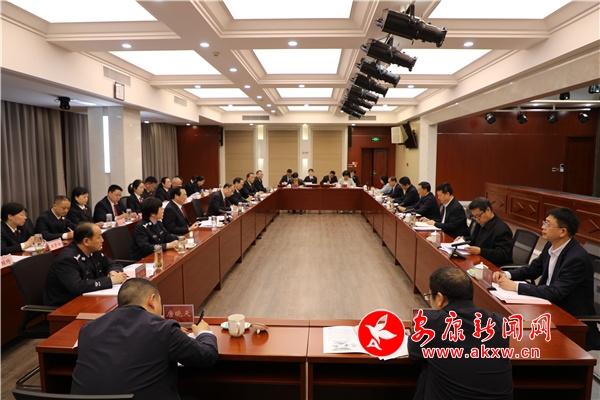 王彪一行先后到12309檢察服務(wù)中心、案管大廳、檢察公開聽證室、指揮中心、新媒體工作室進(jìn)行實(shí)地調(diào)研。王彪強(qiáng)調(diào),人民檢察院是國家的法律監(jiān)督機(jī)關(guān),是國家監(jiān)督體系的重要組成部分,在推進(jìn)全面依法治國、建設(shè)社會主義法治國家中發(fā)揮著重要作用。要堅(jiān)持黨的領(lǐng)導(dǎo),把深入貫徹黨的二十大精神作為首要政治任務(wù),貫通落實(shí)習(xí)近平法治思想,扎實(shí)抓好主題教育,不斷錘煉忠誠干凈擔(dān)當(dāng)?shù)恼纹犯。要服?wù)中心大局,切實(shí)維護(hù)國家政治安全、社會安定、人民安寧、網(wǎng)絡(luò)安靖,主動融入共建共治共享社會治理格局,自覺護(hù)航幸福安康建設(shè),為經(jīng)濟(jì)社會高質(zhì)量發(fā)展提供堅(jiān)強(qiáng)的司法保障。要強(qiáng)化法律監(jiān)督,依法履行好刑事、民事、行政和公益訴訟等檢察監(jiān)督職能,維護(hù)社會公平正義,維護(hù)國家法制統(tǒng)一、尊嚴(yán)和權(quán)威。要鍛造過硬隊(duì)伍,緊扣“三個(gè)年”活動安排,全面從嚴(yán)管黨治檢,持續(xù)推進(jìn)政治建設(shè)和業(yè)務(wù)建設(shè)深度融合,提升檢察人員政治素質(zhì)和專業(yè)素養(yǎng),高標(biāo)準(zhǔn)淬煉忠誠干凈擔(dān)當(dāng)?shù)男聲r(shí)代檢察鐵軍。