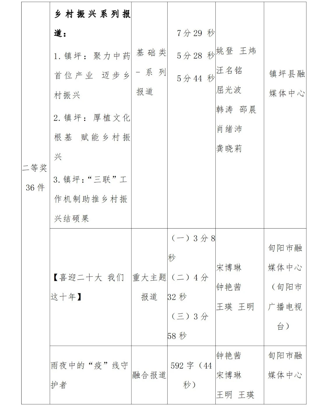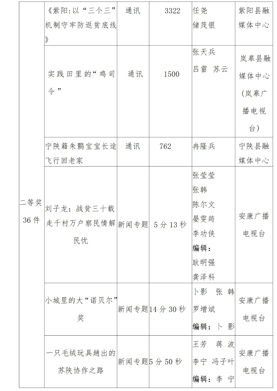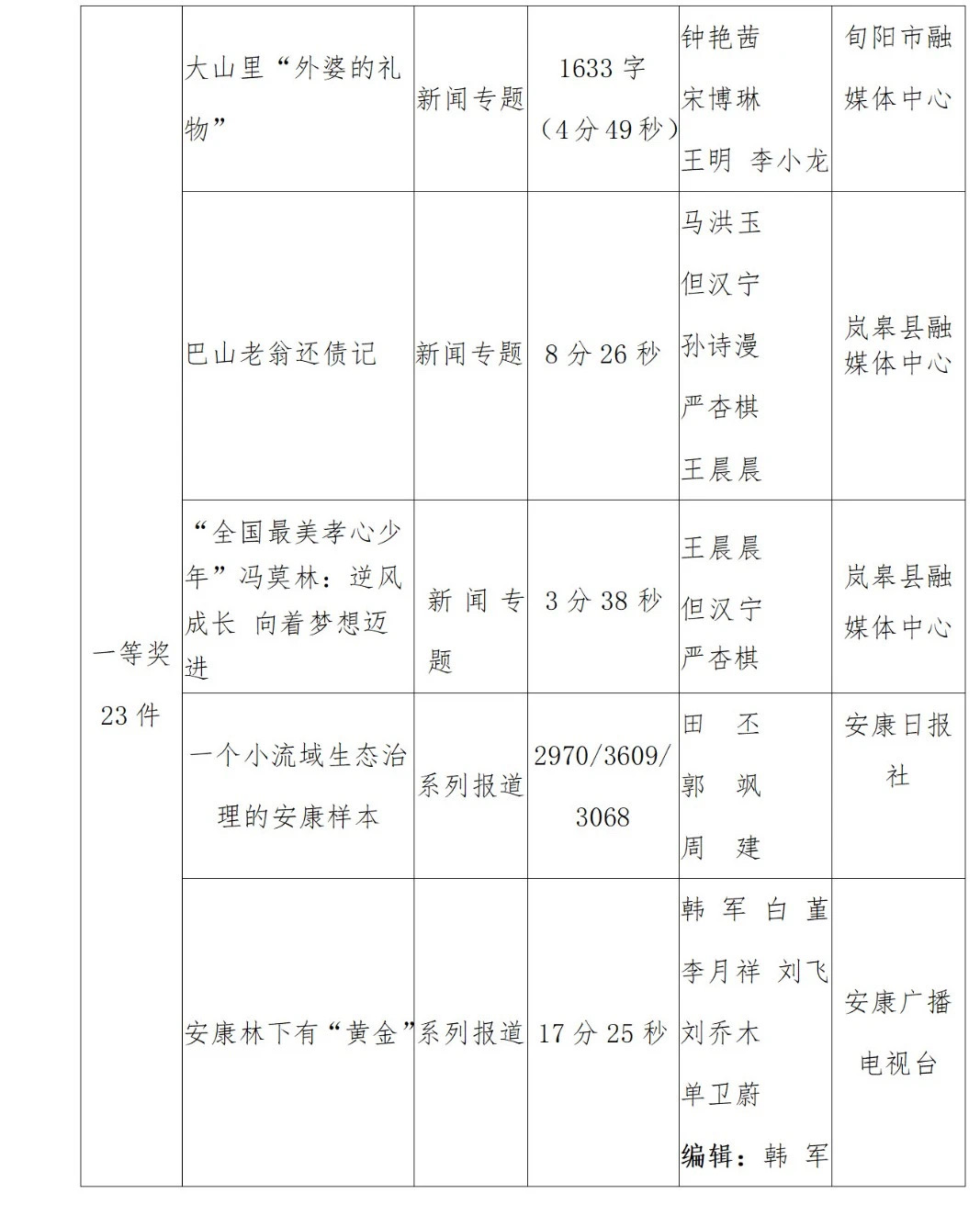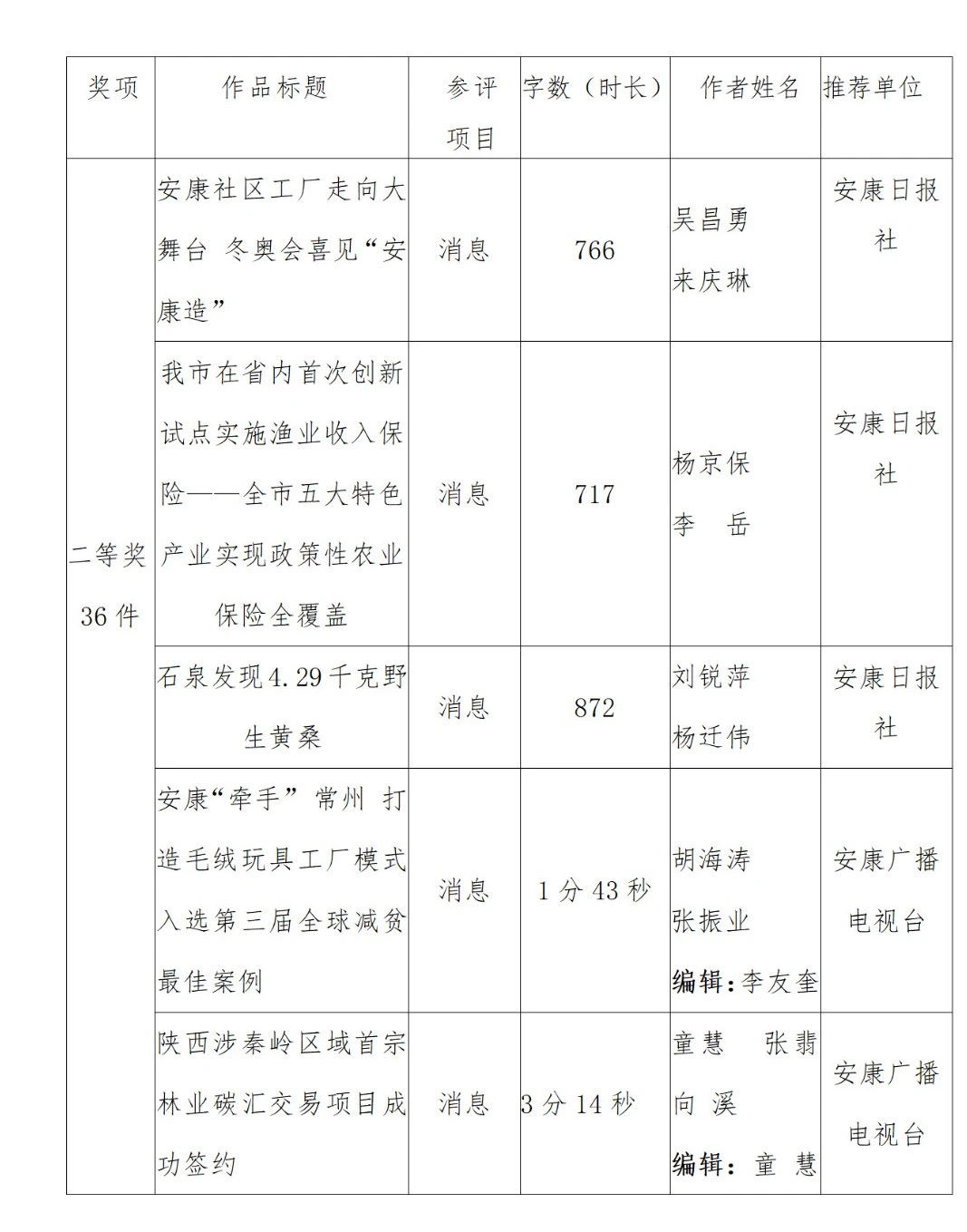 2022年度安康新聞獎(jiǎng)評(píng)審工作在中共安康市委宣傳部的指導(dǎo)下,由市記協(xié)具體組織實(shí)施,經(jīng)過各申報(bào)單位推薦、初審,市記協(xié)復(fù)審并組織專家定評(píng),評(píng)選出擬獲安康新聞獎(jiǎng)作品96件,其中一等獎(jiǎng)23件、二等獎(jiǎng)36件、三等獎(jiǎng)37件。擬授予姚登等14名同志“安康市優(yōu)秀新聞工作者”榮譽(yù)稱號(hào)。