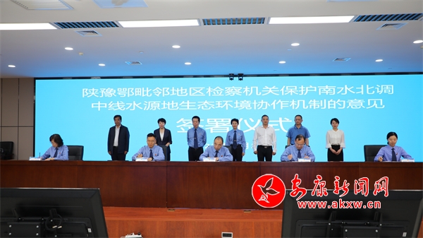 會議期間,南陽、十堰、漢中、商洛、安康五市檢察長會簽了《關于建立陜豫鄂毗鄰地區(qū)檢察機關保護南水北調(diào)中線水源地生態(tài)環(huán)境協(xié)作機制的意見》,健全完善了信息共享、線索移送、通報反饋、生態(tài)修復、調(diào)研巡察等協(xié)作機制。