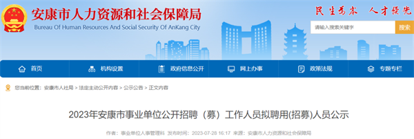 根據(jù)《2023年安康市事業(yè)單位公開招聘(募)工作人員公告》規(guī)定,經(jīng)報名、資格審查、筆試、面試、體檢、考察等程序,現(xiàn)將第一批擬聘用(招募)人員名單(詳見附表)予以公示。