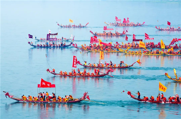 安康龍舟競渡的場面有多火?從清康熙年間的《石泉縣志·風(fēng)俗》記載里可以感受一下:“鼓樂盈街,紅榴綠艾,命索虎符,饋送竟日。官僚尉具席于樓船,敦請長令觀龍舟競渡。男女盈岸……左顧右盼,應(yīng)接不暇。終日而后驂掉,皆游倦而言旋矣。”
