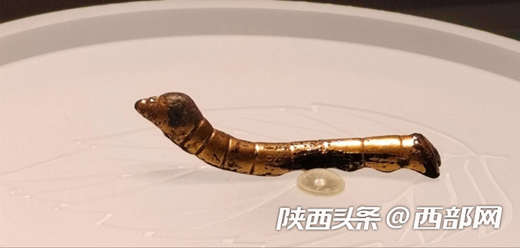 金燦燦華麗麗的蠶寶寶,一睡就是兩千多年。這枚金燦燦的鎏金銅蠶雖小,卻是漢朝鼓勵(lì)發(fā)展蠶桑業(yè)的證據(jù),也成為見(jiàn)證古絲綢之路歷史的代表性文物。