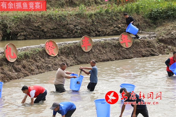 此次歡慶豐收節(jié)活動既有文藝表演,又有拔河比賽、擔糧競賽、抓魚競賽,還有極具地方特色的農(nóng)家蒲籃宴。不僅如此,活動現(xiàn)場還設置了網(wǎng)紅直播帶貨區(qū)、特色農(nóng)產(chǎn)品展銷區(qū),“果蜜紅”茶、富硒綠茶、有機大米、獼猴桃、菜籽油等農(nóng)特產(chǎn)品琳瑯滿目,讓參與活動的群眾和游客盡情感受豐收的喜悅。