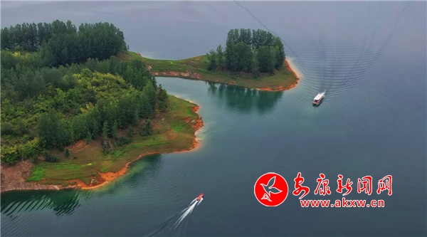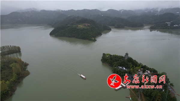 登上游船,憑窗站艙或斜倚欄桿,迎著細(xì)細(xì)春雨,向翠屏島駛?cè)ァ:嫠ú慌d,船像在玻璃上滑行。粼粼水波,像安康絲綢上的細(xì)紋,光滑嫩綠。站在船頭,如駛進(jìn)大海,喜不自勝。雨,像斷了線的珍珠,拋撒在溫柔恬雅的湖面上,點點閃閃,晶瑩明亮。湖上的點水雀不經(jīng)意間從船舷擦水而過,驀然回首,不覺驚異和高興。綿鱗遽然躍水的瞬間,叫人看到飛花點翠的一閃,游子橫波一笑。舷側(cè)的浪花低吟慢唱,猶帶一些委婉悠揚(yáng),頗似顫響在絲竹與板胡上的安康漢調(diào)二黃。船員介紹了翠屏島是因島上的草木蒼翠茂盛,五彩繽紛,從空中俯瞰活像孔雀開屏,故取此名。