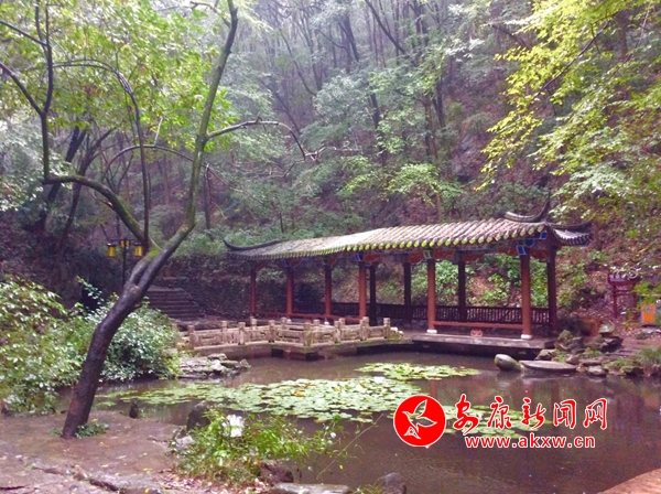 我沿著階梯,踏進(jìn)二天門(mén)旁邊的亭子里,倚在柱子上,聽(tīng)一場(chǎng)秋雨:亭子下的秋霧濃一陣子,淡一陣子。濃時(shí),漫過(guò)亭子,我也在云里,駕著亭子,云里飛度;淡時(shí),露出路下樹(shù)尖,淺黃的葉子掛滿珍珠,一粒一粒的雨珠,從亭子的飛檐上落下,打在藤蔓上,敲打出“叮叮咚咚”的聲音,遠(yuǎn)處的細(xì)雨落在秋葉上,落出“沙沙沙”的聲音,林子里秋鳥(niǎo)的叫聲,和弦在一起,成為秋歌,這美妙的秋歌,在秋霧里蕩漾、蔓延、飄落。我靜靜地聆聽(tīng),我悠哉悠哉地享受,享受這淺秋賜給大地的音樂(lè),聽(tīng)著聽(tīng)著,路邊柱子上的喇叭里舒伯特的《小夜曲》漫過(guò)來(lái),我閉上眼睛,夜就漫過(guò)來(lái),這美麗的《小夜曲》蕩滌著我的靈魂,柔軟的《小夜曲》讓我的淚水溢了出來(lái),這時(shí)候《美麗的磨坊少女》走出來(lái),淡淡的憂傷也流了出來(lái)。我拍拍腦門(mén),醒了過(guò)來(lái),此時(shí),懸掛在路燈上的音箱里,又飛來(lái)劉德華的《秋意中等我》的歌聲,在秋雨里扭來(lái)扭去。