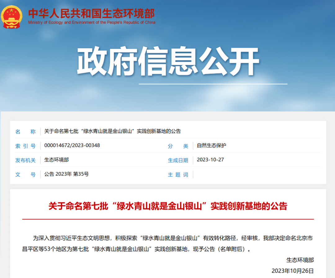 同日,生態(tài)環(huán)境部發(fā)布關(guān)于命名第七批“綠水青山就是金山銀山”實踐創(chuàng)新基地的公告,石泉縣被評為第七批“綠水青山就是金山銀山”實踐創(chuàng)新基地。