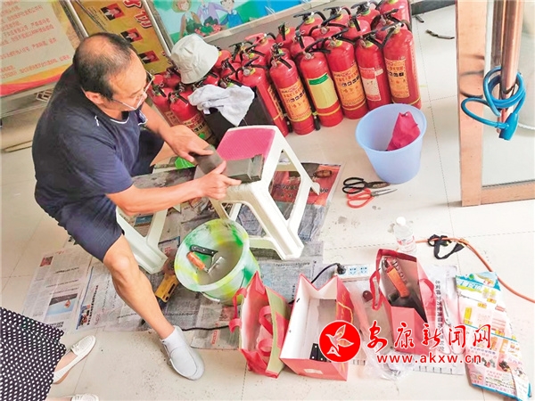 半年后,“老劉工作室”在社區(qū)內(nèi)已小有名氣。此時,御公館小區(qū)的新住戶馮福建認(rèn)出了這位老熟人。“1991年,我還在老家富家河種田,劉成厚復(fù)員后被分到當(dāng)時的八一水庫管理處養(yǎng)魚,他管理的魚塘和我家稻田一渠之隔。