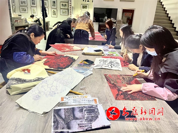 “過去我們只能在家種地帶孩子,掙不到錢,現(xiàn)在刻版畫,一年能多好幾千塊錢收入。”社員李女士說,看到自己的作品能賣出去,心里很高興。