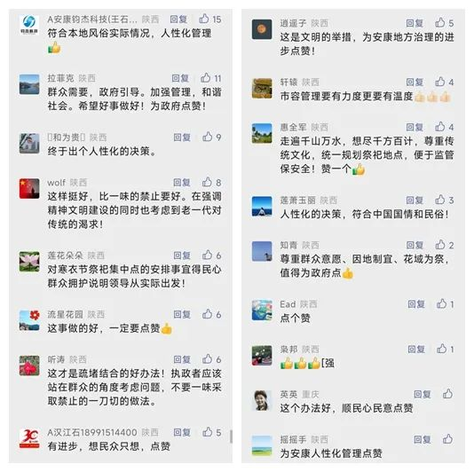 從前期“需要十幾萬元的祭祀場(chǎng)地費(fèi)用”,到“幾乎不花錢”地設(shè)置臨時(shí)集中祭祀點(diǎn)位,既滿足了群眾祭祀需求,又維護(hù)了城市環(huán)境衛(wèi)生和文明形象,還贏得了廣泛贊譽(yù)和民心。“人性化的管理”“暖民心順民意”“城市管理有溫度”……在微信公眾號(hào)留言區(qū)、抖音評(píng)論區(qū),市民對(duì)此舉高度認(rèn)可,好評(píng)一片,反響強(qiáng)烈,也為今后祭祀節(jié)點(diǎn)在中心城區(qū)能夠形成文明祭祀之風(fēng)開了一個(gè)好頭。
