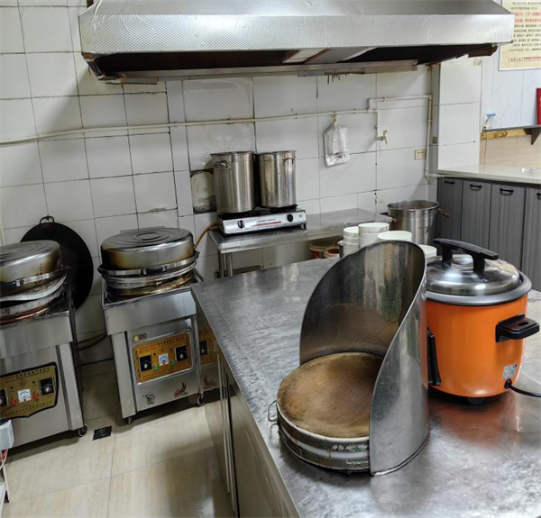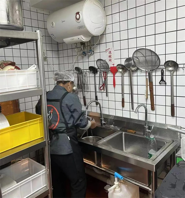 后廚干凈衛(wèi)生,店內(nèi)整潔,物品擺放有序。