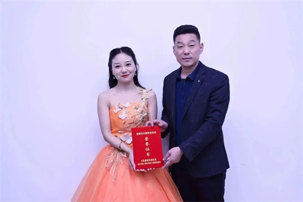 夏梅子榮獲《愛在天地間》春節(jié)聯(lián)歡晚會“一等獎”,晚會總導(dǎo)演劉相周為其頒獎