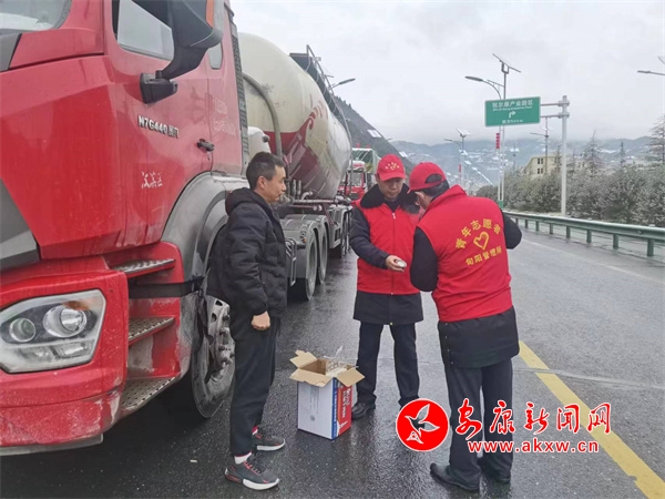 天寒地凍,暖心之舉驅(qū)寒意。在旬陽,志愿者為滯留司機(jī)規(guī)劃行車路線,送上熱水、方便面、面包、奶茶等愛心餐食;在白河,志愿者為滯留司乘送去熱姜湯以及饅頭、雞蛋等食物;在石泉,云霧山鎮(zhèn)聯(lián)合高速收費(fèi)站為旅客準(zhǔn)備暖心面條,收費(fèi)站秒變愛心驛站……