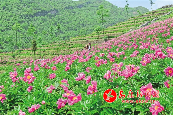 每年五月,白河縣安福村的千畝芍藥、牡丹競相綻放,爭奇斗艷,既是當?shù)厝罕娭赂辉鍪盏漠a(chǎn)業(yè)項目,又是吸引游客的一大亮點。
