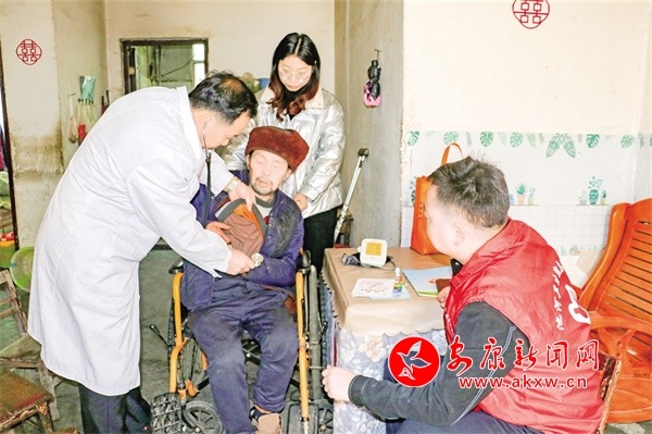 石泉縣池河鎮(zhèn)中心衛(wèi)生院為“家庭醫(yī)生”服務(wù)對(duì)象開展定期檢查。 張磊 攝