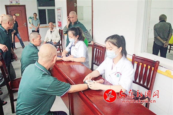 白河縣構(gòu)朳鎮(zhèn)衛(wèi)生院工作人員到構(gòu)朳中心敬老院進(jìn)行義診。方正 攝