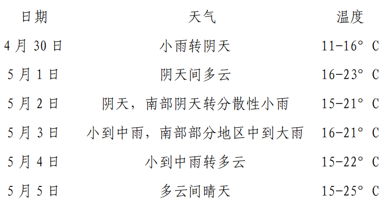 溫馨提示:5月1—2日我市以陰天到多云天氣為主,溫度適宜,空氣質(zhì)量較好,適合外出游玩;3—4日有明顯降水天氣降水過(guò)程,需防范降水導(dǎo)致的道路濕滑、低能見(jiàn)度等對(duì)道路交通的不利影響。公眾可及時(shí)關(guān)注最新預(yù)報(bào)預(yù)警信息,合理安排出行時(shí)間。