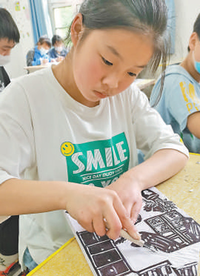 “美是有力量的。”在周墻看來,讓更多孩子認(rèn)識(shí)了解傳統(tǒng)木刻版畫、掌握制作技藝,不僅可以用版畫作品展示中小學(xué)美育成果,還能促進(jìn)對(duì)傳統(tǒng)技藝的保護(hù)傳承。