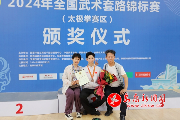 當(dāng)運動健兒們在競技場上奮勇爭先,看臺上的那股暖流,是永遠包裹著他們的愛與柔情。“安康觀眾很熱情,爸爸媽媽在觀眾席,我很開心。”西安體院韓郭治宇獲得男子太極拳第三名。頒獎結(jié)束后,韓郭治宇懷抱鮮花,手舉證書和爸爸媽媽一起合影留念。