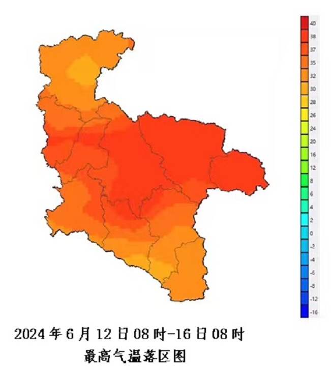 2024年6月12日08時(shí)—16日08時(shí)最高氣溫落區(qū)圖