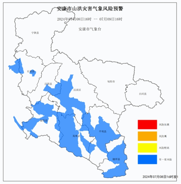 本網(wǎng)訊 7月8日16時(shí),安康市水利局、市氣象局聯(lián)合發(fā)布山洪災(zāi)害氣象風(fēng)險(xiǎn)預(yù)警:預(yù)計(jì),7月8日16時(shí)至7月9日16時(shí),漢濱區(qū)中部、漢陰縣東部、石泉縣中部、紫陽(yáng)縣、嵐皋縣、平利縣中部、鎮(zhèn)坪縣中南部有可能發(fā)生山洪災(zāi)害(藍(lán)色預(yù)警)。